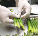 PE手套:材質PE俗稱手扒雞手套,阻隔手對物體尤其是食物的直接碰觸。進而防止病原菌對食物的污染,優點價格便宜。